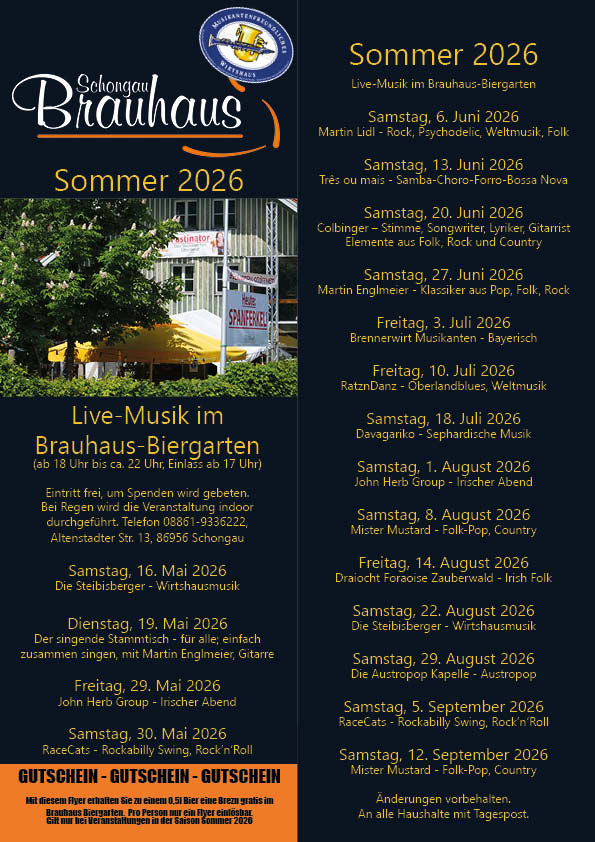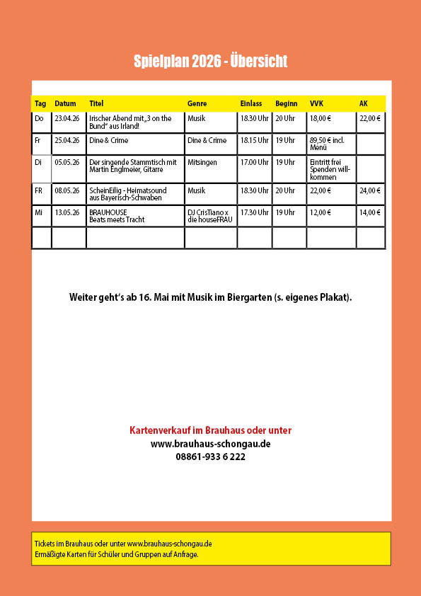 Bitte wenden Sie sich gegebenenfalls an den Veranstalter (Kulturteam Oberland – Verein zur Förderung von Kunst und Kultur im Oberland e.V., Altenstadter Str. 13, 86956 Schongau. Zusätzlich haben Sie das Recht zur Beschwerde bei der zuständigen Aufsichtsbehörde